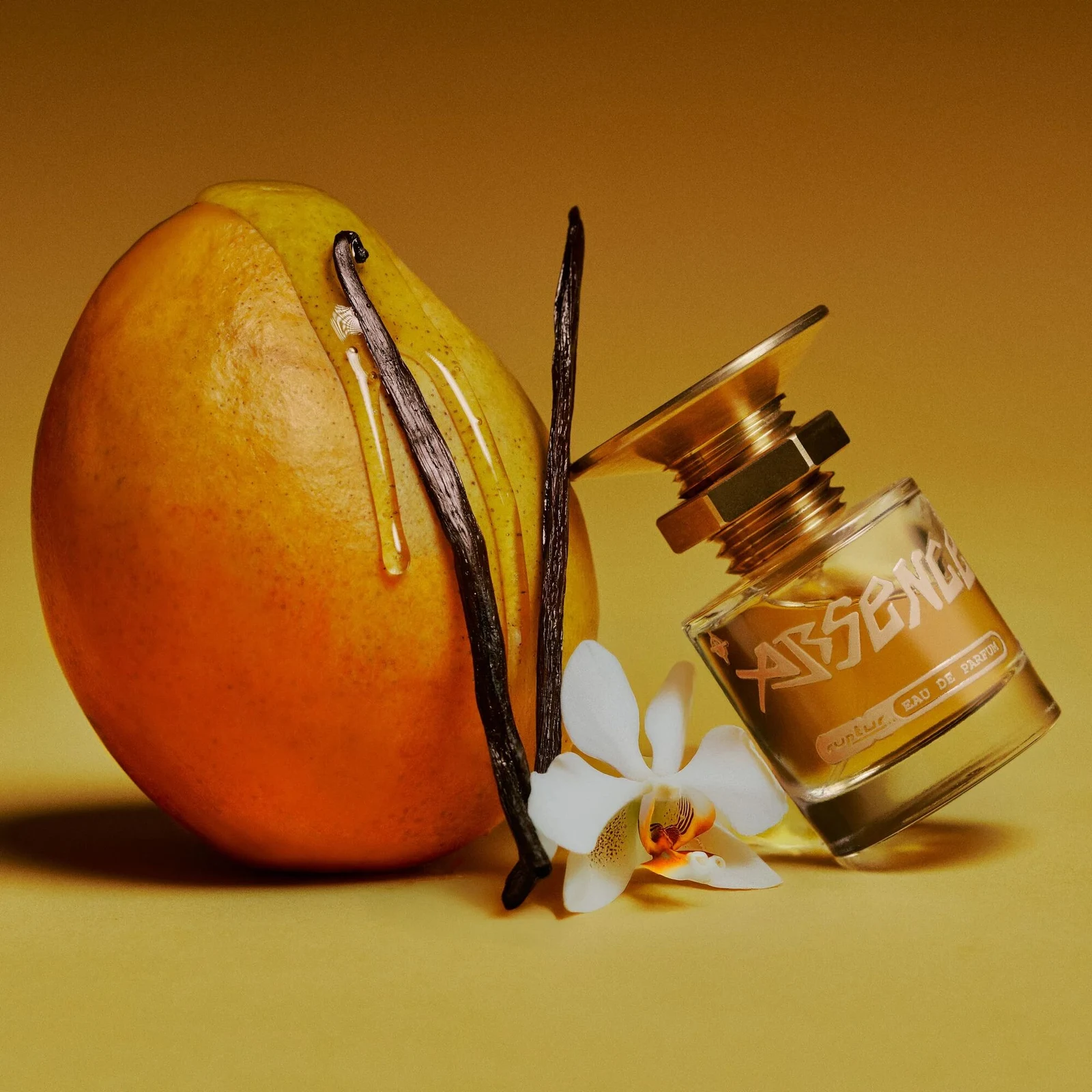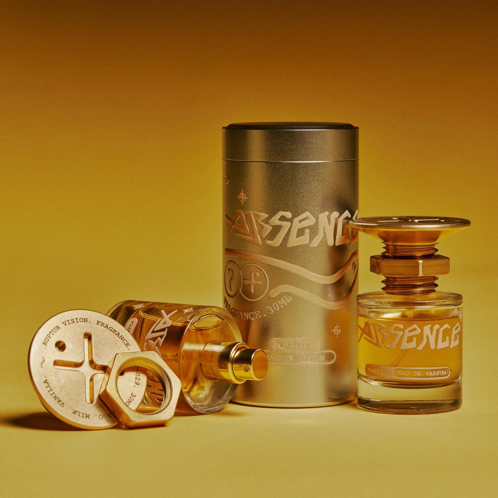 Absence de Ruptur es una creación de la familia olfativa oriental vainilla, diseñada para hombres y mujeres. Esta nueva fragancia, lanzada en 2025, despliega una pirámide olfativa donde la nota de salida es mango; las notas de corazón son miel y leche; y la nota de fondo es vainilla.