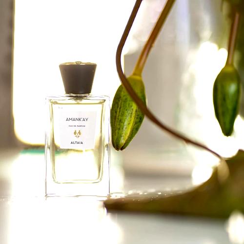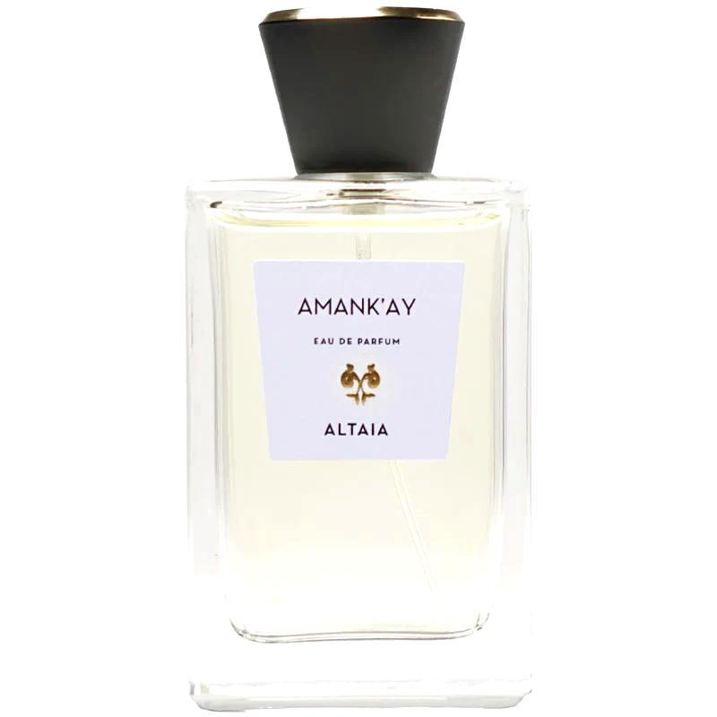 La transición hacia el núcleo de Amank'ay se suaviza con la presencia etérea de la flor de loto, aportando un toque acuático y puro que equilibra a la perfección la composición. En su base, el perfume se asienta sobre un lecho cálido y seductor de almizcle ambreta y sándalo, creando un fondo amaderado y musgoso que prolonga la durabilidad de la fragancia sobre la piel.
