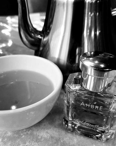 Al principio, me pareció detectar un toque de bergamota mezclado con una esencia verde que no logré identificar al instante, pero creo que era una mezcla interesante de mandarina con manzana roja. Desde el principio, el ámbar se hizo notar, marcando presencia. A las seis horas de habérmelo puesto, el perfume se estabilizó en una combinación agradable de ámbar, vainilla y ládano.