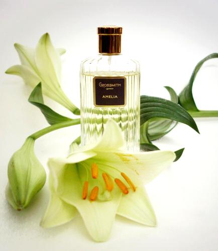 Amelia Grossmith es una fragancia que evoca una sofisticación sin esfuerzo, diseñada para quienes aprecian los matices de un perfume bien orquestado. En la primera atomización, la fragancia abre con una nota alta de neroli, aportando un toque cítrico y refrescante que abre paso a un corazón floral complejo. El osmanto, conocido por su aroma dulce y afrutado que recuerda al albaricoque, se entrelaza armoniosamente con la peonía, la rosa y el jazmín, creando un bouquet floral exquisito que captura la esencia de la feminidad.