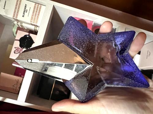 Fue mi primer perfume de Mugler, lo compré a ciegas. Al principio no me gustó, no me desagradaba desde la botella, pero en piel sentía que olía a vómito. Se lo probé a mi hermana y en ella olía delicioso, así que me obligué a usarlo hasta que me enganchó. Ahora me encanta: es único, ese dulce con pachuli. Se adaptó a mi pH, huele a pastelitos y a macarons recién horneados.