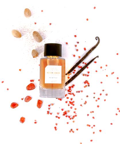 Al primer contacto, "Bal De Minuit" seduce con la vivacidad de la pimienta rosa, suavemente entrelazada con la calidez de la nuez moscada, creando un preludio intrigante. La experiencia se profundiza con el corazón de iris de la Toscana, una nota que aporta un toque polvoriento y ligeramente floral, revestido de misterio y elegancia. El ámbar, presente en su base, ofrece una calidez resinosa que, junto a la vainilla, crea un fondo envolvente y seductor. El toque final lo aporta el ládano, una resina que ensalza el carácter ambarino y otorga un acabado suave pero profundamente resonante.