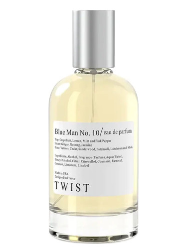 Blue Man No. 10 de Twist es una fragancia de la familia olfativa Amaderada Aromática para Hombres. Blue Man No. 10 se lanzó en 2022. Las Notas de Salida son pimienta rosa, toronja (pomelo), limón (lima ácida) y menta; las Notas de Corazón son jazmín, nuez moscada y jengibre; las Notas de Fondo son sándalo, pachulí, ládano, vetiver, cedro y almizcle.