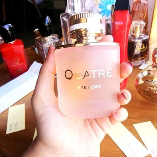 Juvenil, fresco y de día. Típico de líquidos rosas: rosas muy ácidas quitan ternura al melocotón. Al asentar, el pachuli y vetiver lo hacen interesante, pierde el aire girly y se siente unisex. Podría ser un Si de Armani más relajado y menos aldehídico. Si buscas algo primaveral y sin exotismo, te va a gustar. Si tengo que elegir, prefiero el Quatre original.