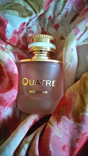 Este perfume es delicioso, tiene un aroma bastante dulzón y despierta sentimientos románticos. A mi pareja realmente le encantó. Su duración es bastante aceptable aunque su presencia no es muy intensa, no deja un rasto prominente a tu paso. El aroma a rosa es el protagonista aquí, así que si ya cuentas con varios perfumes que tengan ese elemento, quizás no te sorprenda demasiado. Aunque no supera al Quatre original en mi opinión, definitivamente lo consideraría para adquirirlo nuevamente una vez haya agotado los que tengo con notas de rosa.