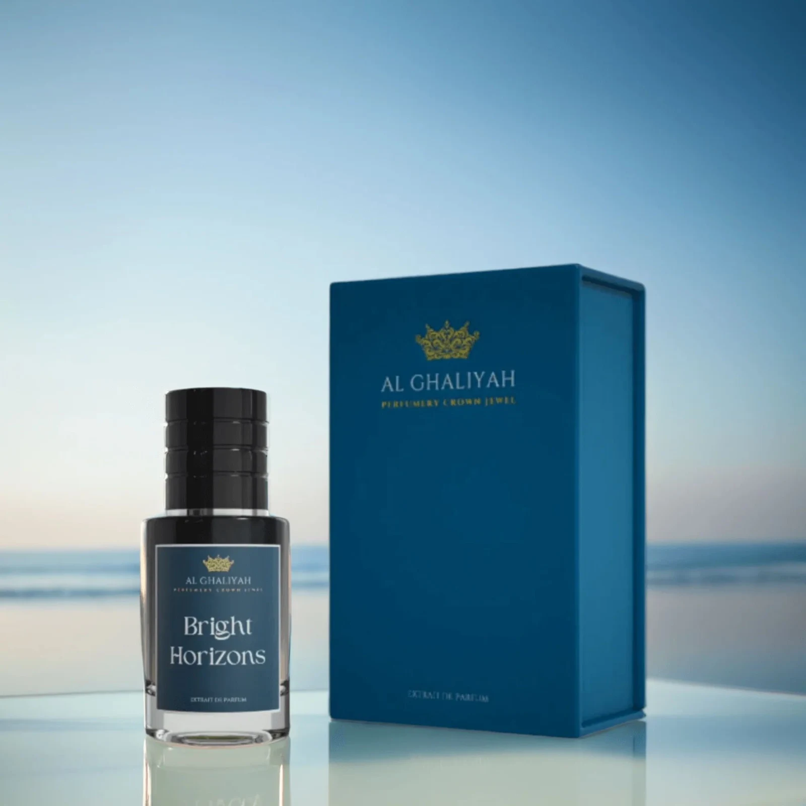 Bright Horizons de Al Ghaliyah es una fragancia de la familia olfativa para hombres y mujeres. Las notas de salida son jazmín chino, mandarina verde, naranja dulce, bergamota y rosa; las notas de corazón son petit grain y esclarea; las notas de fondo son oud indio, pachulí, flor de cuaba blanca (madera de amyris) y almizcle.