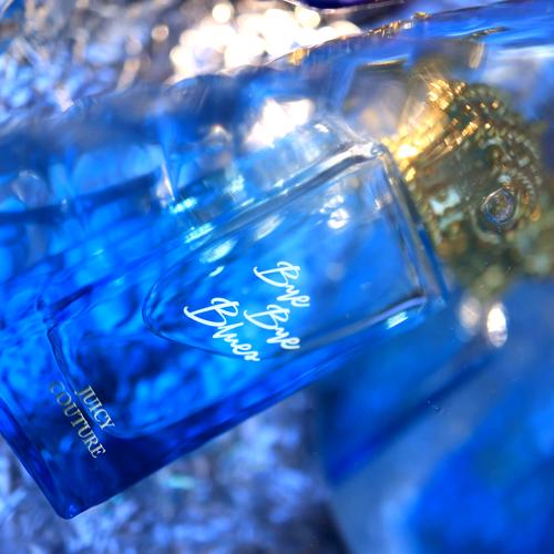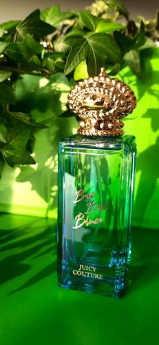 Bye Bye Blues de Juicy Couture ¡Esta fragancia refrescante derrite las preocupaciones! Un aroma para hacerte sonreír, como un cóctel de frutas. Abre con notas acuosas, fruta de agua y limón espumoso; su corazón es un ramo de orquídeas azules donde el loto le da un toque distinto. En la base mezcla madera flotante (la que devuelve el mar a la costa), el brillo del ámbar y el calor del almizcle. Lanzada en 2019, tiene estela moderada y dura 4 horas (con crema humectante llega a 6). Es tan divertida, alegre y refrescante que no me importa llevar el aplicador en el bolso; es un EDT para días calurosos, creativo, brillante y despreocupado, un hermoso sueño teñido de azul.