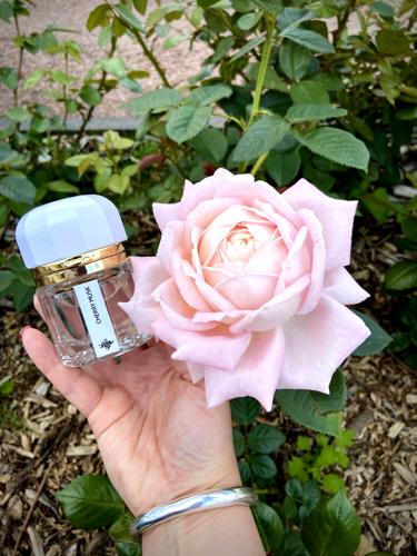 • Es floral y almizclado, con una cereza ácida muy sutil. Queda elegante y refinado, fresco para todo. La proyección es moderada a baja, dura unas 4 horas y luego se queda a ras de piel hasta las 6.