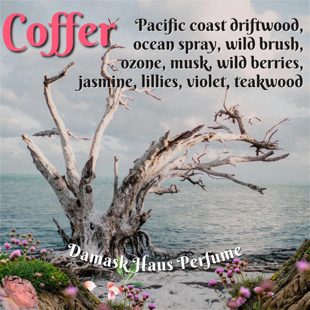 Coffer de Damask Haus es una fragancia de la familia olfativa almizcle floral amaderado para hombres y mujeres. Lanzada en 2021, esta composición está firmada por la nariz Bri Beyer. En su salida, notas ozónicas y bayas silvestres abren el camino; el corazón revela azucena, violeta y jazmín; mientras que el fondo se asienta sobre trozos de madera a la deriva, madera de teca, notas amaderadas y almizcle.