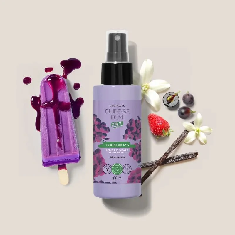 Cuide-se Bem Feira Cachos de Uva Hair de O Boticário es una fragancia de la familia olfativa floral frutal para mujeres. Esta creación, firmada por la casa brasileña, se lanzó en 2025 y presenta una composición fresca y vibrante que evoca la esencia de los cachos de uva. Aunque los detalles específicos de las notas de salida, corazón y fondo no están detallados en la ficha técnica disponible, su perfil olfativo se sitúa claramente en el universo floral frutal, diseñado para ofrecer una experiencia sensorial moderna y desenfadada.
