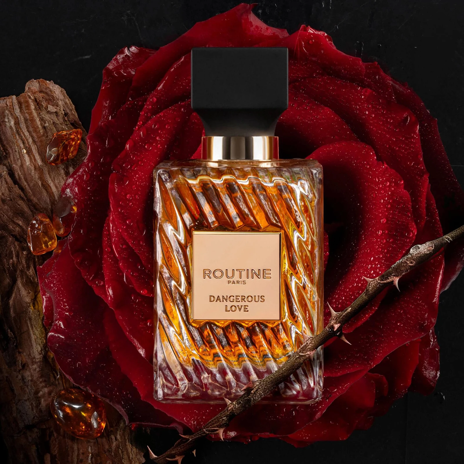 Dangerous Love de Routine Paris es una creación de la familia olfativa oriental amaderada, diseñada para hombres y mujeres. Esta nueva fragancia, lanzada en 2025, despliega una pirámide olfativa donde las notas de salida combinan la frescura de la lavanda con el calor de la canela y la dulzura de la manzana. El corazón de la composición revela la delicadeza del lirio de los valles o muguete, el maderal del cedro y la floralidad de la rosa. Para finalizar, las notas de fondo ofrecen una cálida y envolvente secuencia de ámbar, sándalo y vainilla.