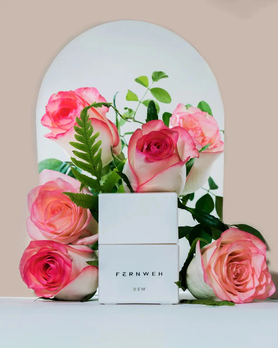 Dew de Fernweh es una fragancia de la familia olfativa floral frutal para mujeres. Las notas de salida son cítricos y peonía; las notas de corazón son osmanto (olivo oloroso) y rosa inglesa; las notas de fondo son sándalo y pachulí.