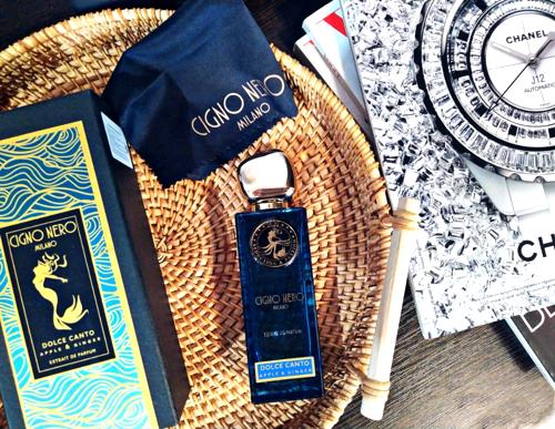 El corazón de Dolce Canto Cigno Nero se revela con el opulento jazmín, que añade un toque de feminidad y elegancia, mientras que la base de la fragancia te enraíza en la tierra con sus notas profundas de almizcle, sándalo y cedro. Esta composición crea un perfecto equilibrio entre la aventura y la sofisticación, haciendo de esta fragancia la elección ideal para aquellos que desean dejar una impresión duradera.