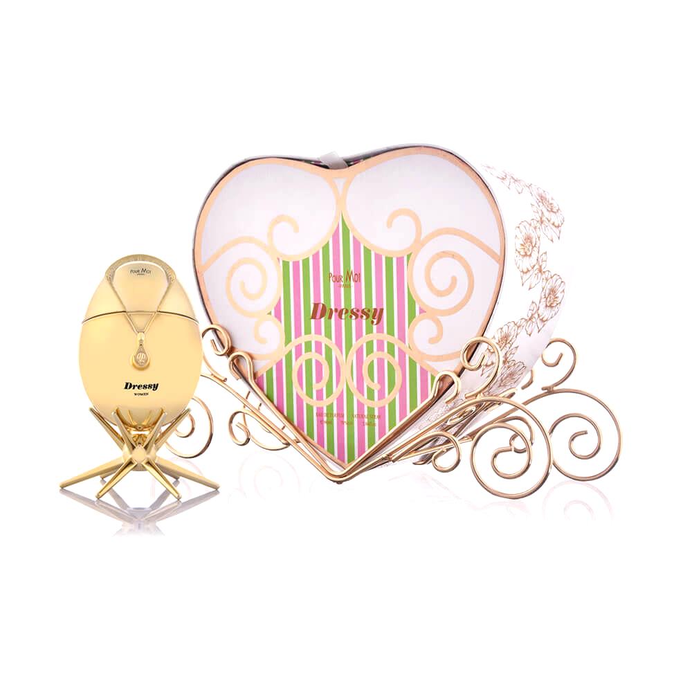 El viaje concluye con una base de vainilla, suave y cálida, que se entrelaza magistralmente con el pachulí y el almizcle para un final persistentemente embriagador. El toque final de cedro aporta una estructura de madera refinada, otorgando a Dressy PourMoi una aroma inconfundible. Este perfume es una obra maestra de contrastes, perfecta para quienes buscan dejar una impresión memorable.