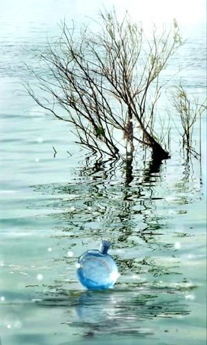 Los tonos acuáticos me llevan a pensar en una sed tan profunda que hasta el agua de una botella de plástico al calentarse podría saber a la mejor bebida. Me recuerda a esa estructura que vi una vez en la Expo de Zaragoza, conocida como ‘el pabellón de la sed’, cuya decoración con gotitas de agua parecía reflejar un deseo profundo por un poco más de hidratación.