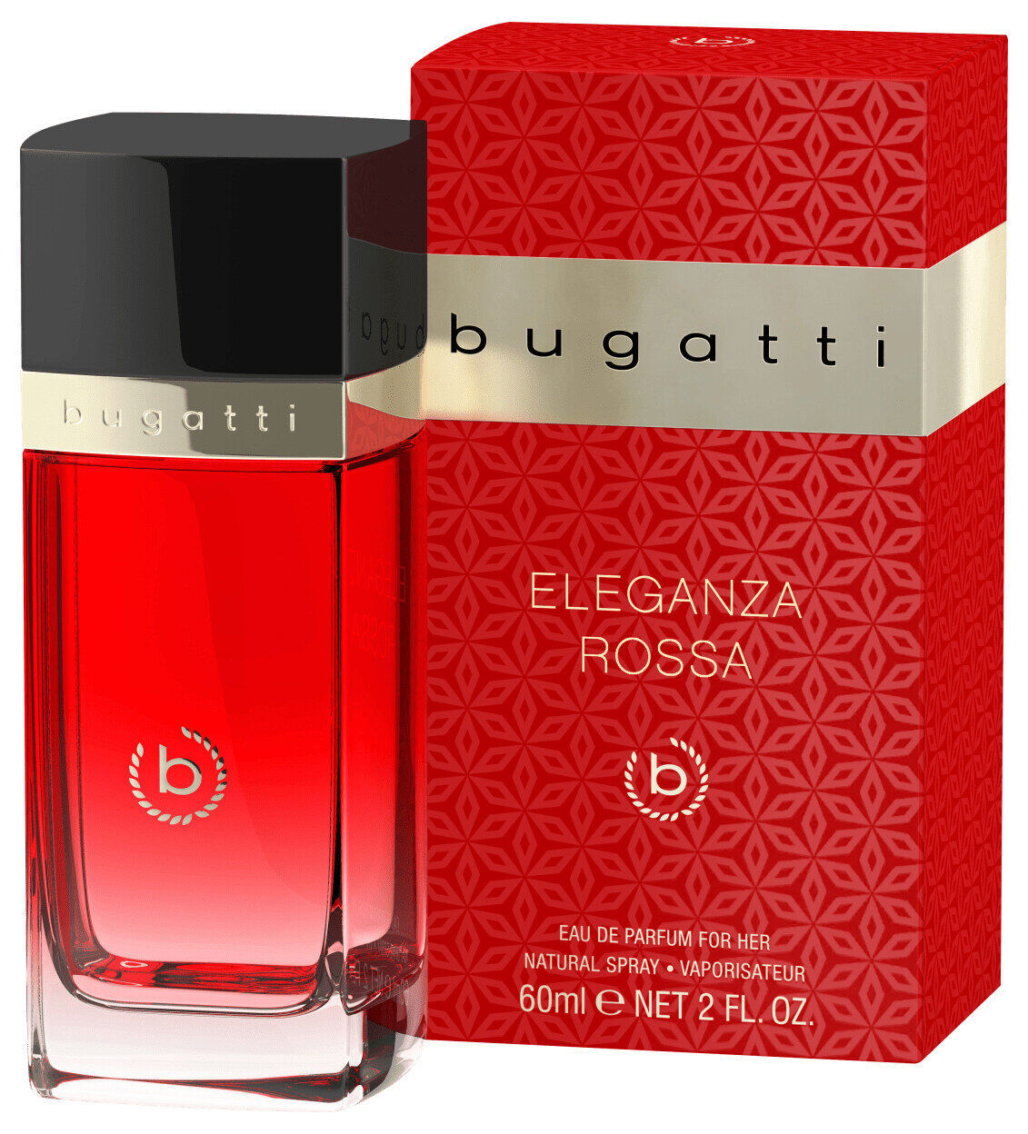 Eleganza Rossa de Bugatti Fashion es una fragancia de la familia olfativa Floral Frutal Gourmand para Mujeres. Esta fragrancia es nueva. Eleganza Rossa se lanzó en 2023. Las Notas de Salida son Cherry Liqueur, frambuesa y durazno blanco (melocotón blanco); las Notas de Corazón son Iris Pallida, lirio de los valles (muguete) y jazmín sambac (sampaguita); las Notas de Fondo son ámbar, vainilla y pachulí.