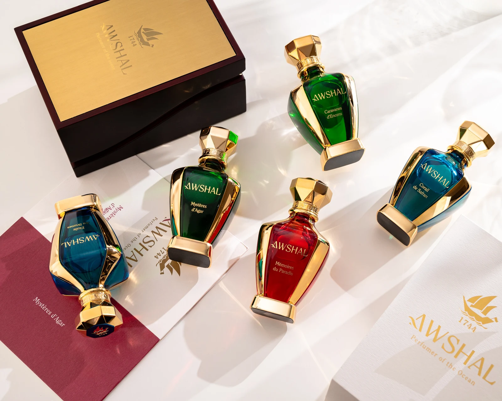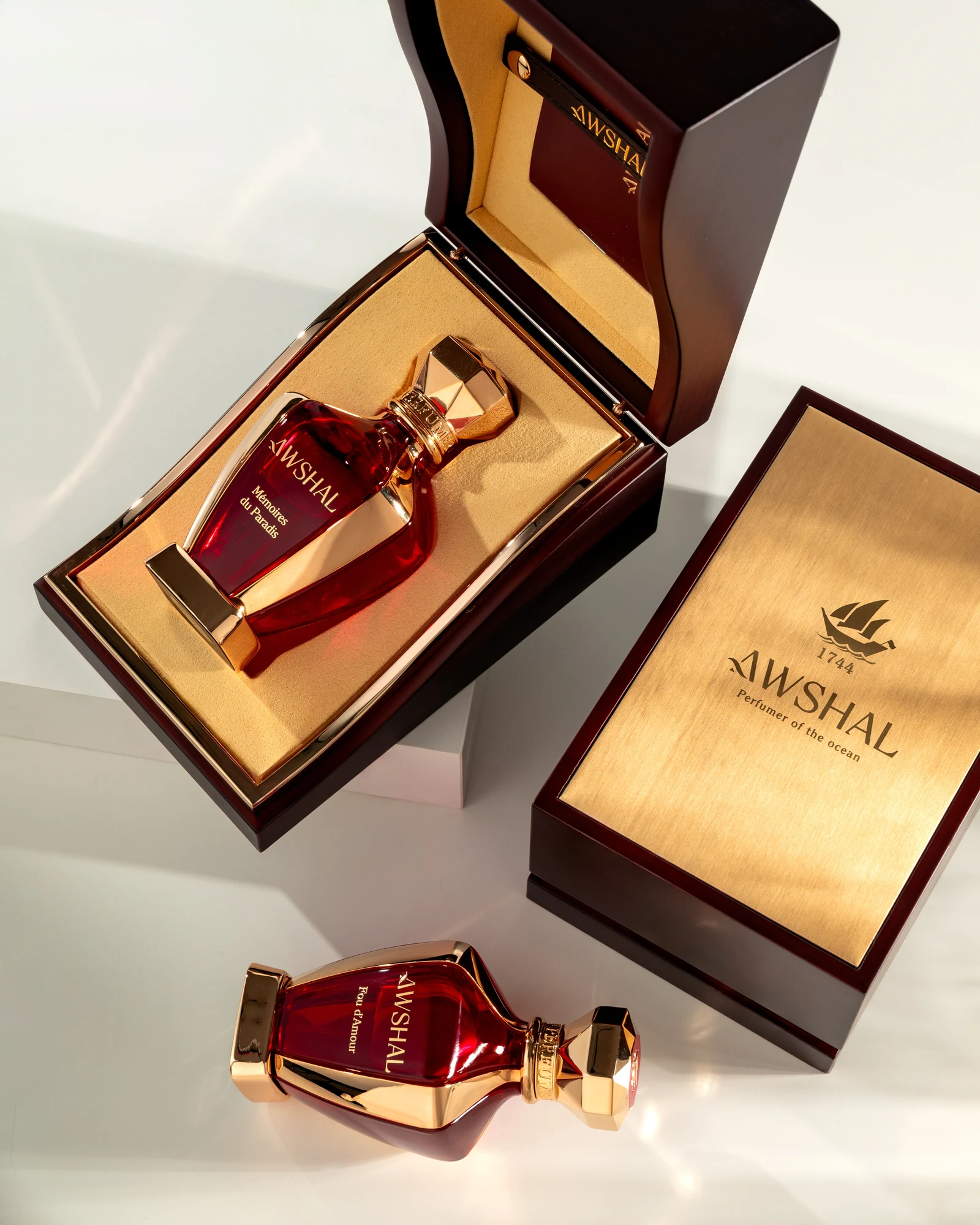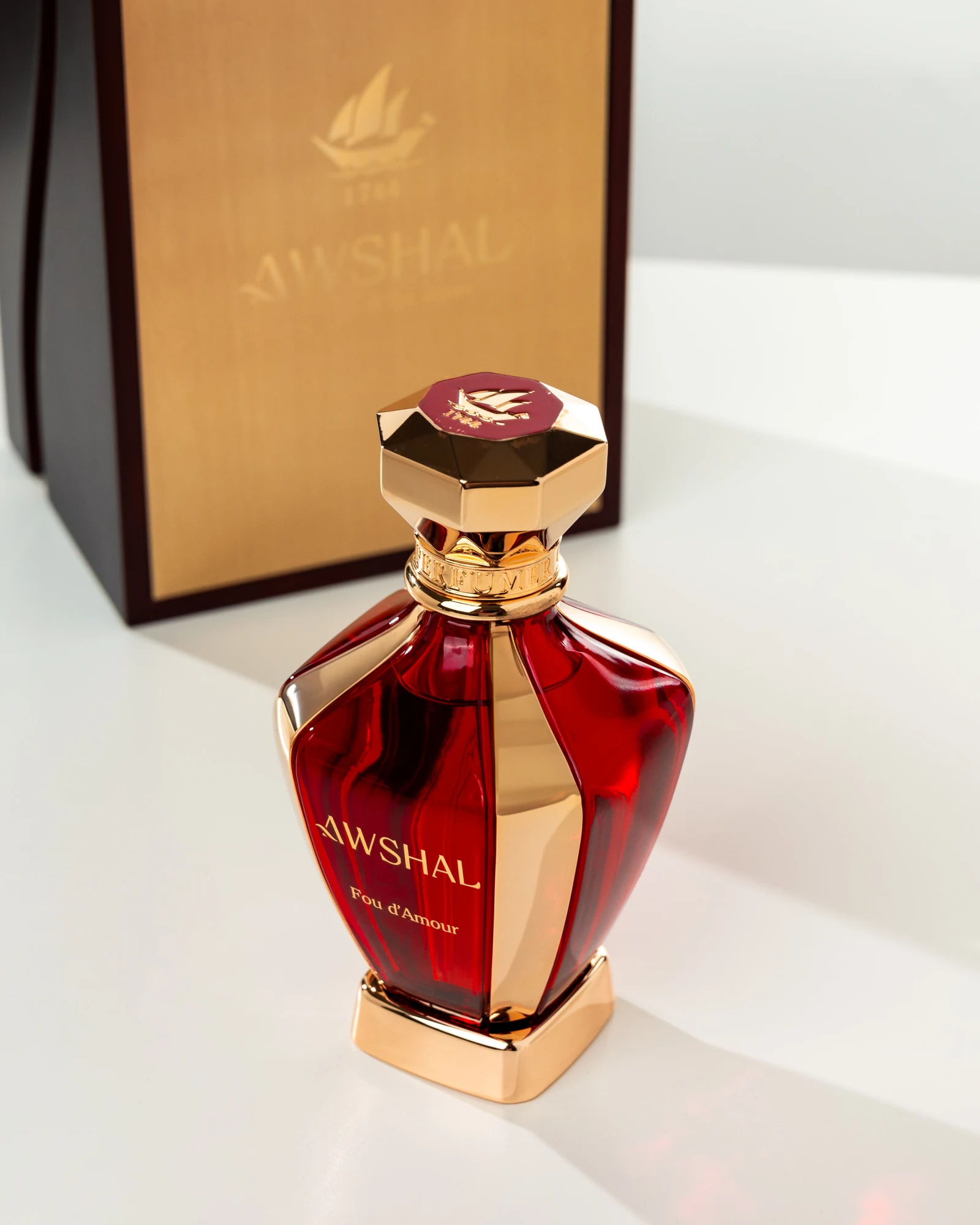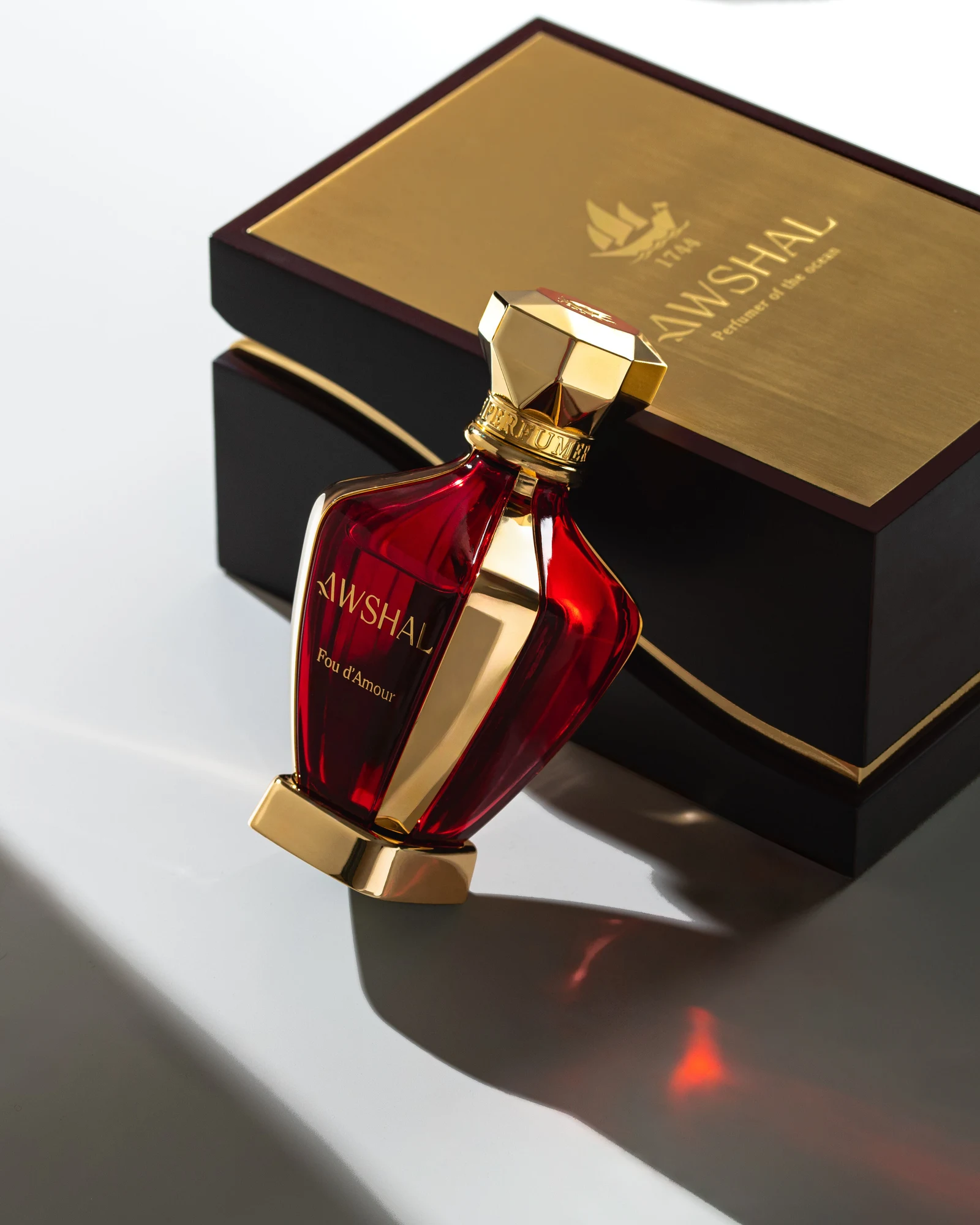 Fou d'Amour de Awshal es una fragancia de la familia olfativa oriental floral para hombres y mujeres. Esta creación, lanzada en 2024, está firmada por el perfumista Fabrice Pellegrin. Su pirámide olfativa despliega en la salida azafrán y frambuesa; en el corazón, violeta, jazmín y osmanto (olivo oloroso); y en el fondo, madera de oud, cuero, almizcle blanco, vainilla y styrax.