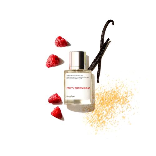 La nueva fragancia Fruity Brown Sugar Dossier captura la esencia de la dulzura y la seducción en una armoniosa mezcla de notas. Al primer contacto, esta fragancia deleita con una explosión fresca y jugosa de frambuesa, pera y bergamota, creando un inicio vibrante que despierta los sentidos. La introducción de flor de azahar del naranjo aporta un corazón floral sutilmente intoxicante, preparando el escenario para el protagonista de esta composición: el azúcar moreno. Este ingrediente clave, en combinación con el exótico jazmín, teje una trama olfativa reconfortante y profundamente atractiva.