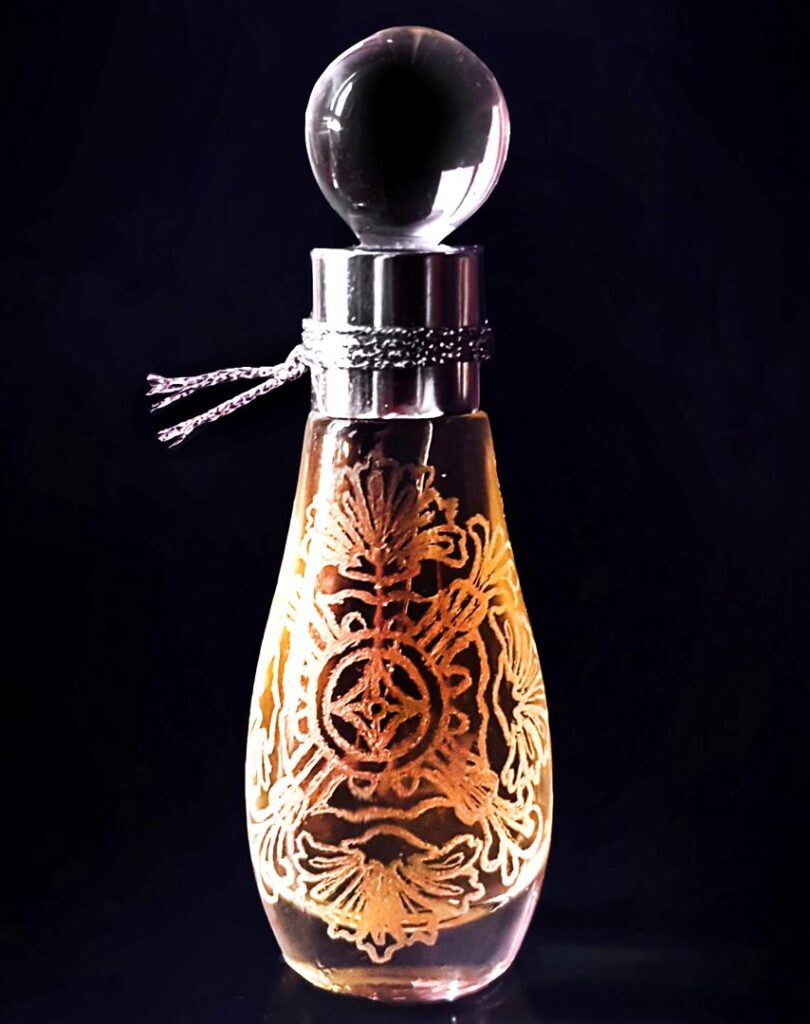 El viaje aromático continúa con una mezcla compleja de cachemira, rosa de Damasco y acordes verdes que añaden un toque de elegancia y profundidad. El musgo de roble, junto con el heliotropo y el iris, aporta una base terrosa y rica que refleja la naturaleza robusta y persistente de esta fragancia. El ámbar y la madera de ébano, combinados con incienso de olíbano, almizcle, pachulí y ládano, crean un final cálido y seductor, dejando un rastro memorables que perdura.