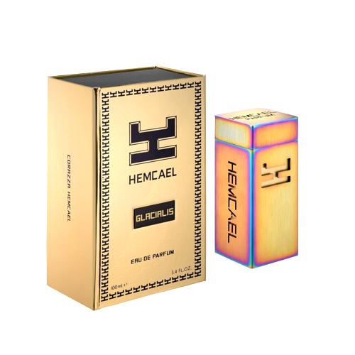 Sumérgete en la frescura y la intriga con Glacialis Hemcael, una fragancia que evoca imágenes de paisajes recónditos y aventuras en la naturaleza. Este perfume único se abre con una mezcla refrescante de acordes verdes, ofreciendo una sensación revitalizante que captura la esencia de la libertad y la exploración. La introducción del palisandro añade una profundidad inesperada, un preludio perfecto para el corazón especiado de canela, que baila en armonía con el noble cedro. La rosa y el ylang-ylang, delicadas y sofisticadas, abrazan tus sentidos, transportándote a un jardín secreto lleno de maravillas ocultas.