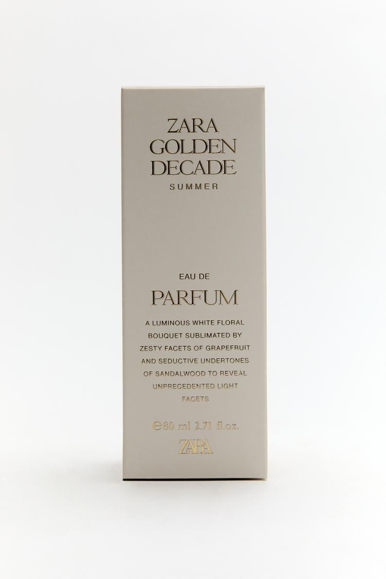 Golden Decade Summer de Zara es una fragancia de la familia olfativa para Mujeres. Esta fragrancia es nueva. Golden Decade Summer se lanzó en 2024. La Nota de Salida es toronja (pomelo); la Nota de Corazón es flores blancas; la Nota de Fondo es sándalo.