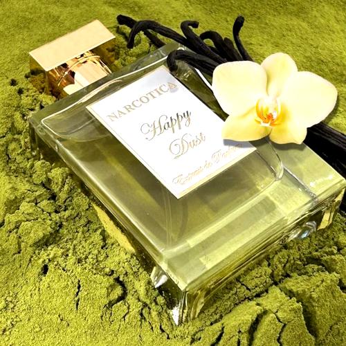 "Happy Dust Narcotica" es más que un perfume; es una declaración de intenciones, un amuleto que invita a desafiar lo ordinario y a sumergirse en un mundo donde los sueños se funden con la realidad. Dirigido a aquellos que se atreven a dejar huella, esta fragancia encapsula la esencia de la aventura, el romance y el misterio, convirtiéndola en una adición imprescindible en la colección de los amantes de los perfumes únicos y atrevidos.