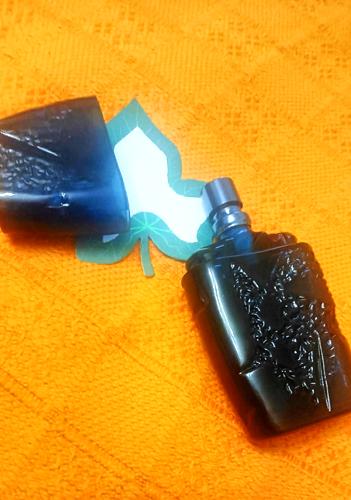 Recuerdo perfectamente esa botella llamativa de un profundo azul marino transparente. He pasado años buscando esta fragancia que parece haber desaparecido con el tiempo. A pesar de todo, el destino me sonrió, entregándome una miniatura de este perfume tan esquivo.