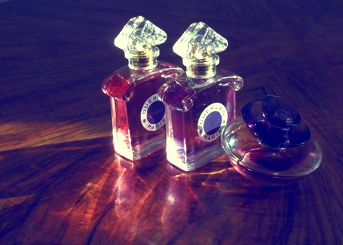 La fragancia de Guerlain es bastante rica en matices, evitando ser monotemática. Desde el primer momento, se siente un aroma dominante a violeta pero de una manera muy fresca y casi jabonosa. A pesar de ser eminentemente dulce, también tiene un toque muy limpio, a veces me recuerda hasta el olor de las toallitas desmaquillantes. En mi piel sobresalen notas de vainilla y flor de azahar. Incluso percibo un toque ácido, descrito como fresa, que aunque no me parece frutal, equilibra perfectamente el predominante dulzor de la violeta.