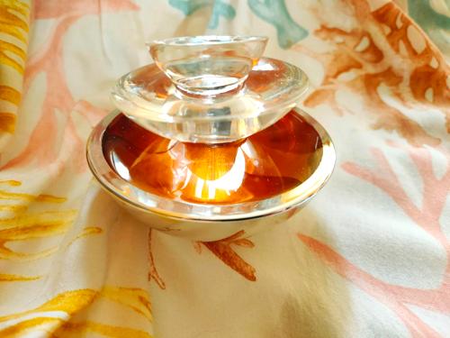 Mezcla explosiva de violetas que, en lugar de ser suaves y atalcadas, se convierten en un elixir potente y enfático con un toque denso y oriental. El sándalo inconfundible crea una atmósfera cargada de misterio y sofisticación, dejando una caricia suave de brillantitos plateados sobre la piel que la hacen más alegre; el aroma es intenso y muy duradero. Para mí huele igual que la original, aunque la vendedora aseguró que es una versión más light, y lo más curioso es que la compré, no puedo creerlo, 2×1.