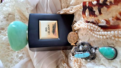Al primer contacto, Iris Celadon revela su carácter distintivo a través de una atomización fresca y ligeramente especiada, gracias a la mezcla maestra de cardamomo y aldehídos, complementada con un toque efervescente de bergamota. Este preludio da paso al verdadero protagonista de esta composición: el iris. Este ingrediente, conocido por su intensidad y textura aterciopelada, se duplica en el corazón de la fragancia, ofreciendo una interpretación profunda y casi táctil.