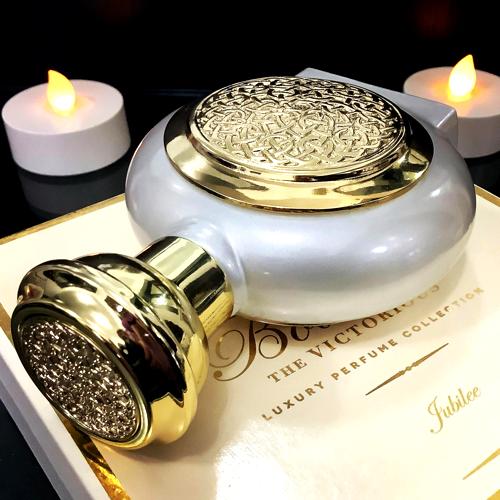 Profundizando en su complejidad, la base de Jubilee ofrece una sinfonía de madera de oud, que añade un carácter lujoso y profundo, complementado a la perfección por el brillo del ámbar cristalino y el calor envolvente de las notas amaderadas. El sándalo y el almizcle cierran esta composición, aportando suavidad y una seducción persistente que se adhiere a la piel y al recuerdo.