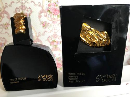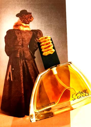 Esta fragancia es la más dulce de las rosas chypre de los 80 y principios de los 90 que he podido oler. Regresemos al pasado: Diva Ungaro (1983), Clandestine Laroche (1986), Paloma Picasso (1984), Parfum de Peau Montana (1986), Knowing Estee Lauder (1988). Todas con un estilo marcado y similar. Algunas con más cuero, otras más especiadas, también con más o menos civeta, pero en definitiva el ADN similar característico de los 80 y todas con gran presencia de rosas. L’Arte Di Gucci nació a principios de los 90 cuando toda esa tendencia ochentosa estaba desapareciendo, como si fuera el último suspiro de esa camada. No podemos ponerla a competir, porque tuvo tiempo para mejorar a las otras y aprender de sus errores. L’Arte Di Gucci tiene el balance perfecto, todas las notas equilibradas y bien manejadas, no es ni demasiado amarga, ni demasiado seca, ni demasiado estridente. Es una rosa chypre atalcada y dulce en su máximo esplendor. Tiene toques de vino de uva de máxima calidad. Es muy narcótica, y la rosa es bastante más prominente que en los demás chypres florales. Una verdadera joyita. Una verdadera obra de arte.