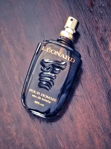 Fragancia de hombre excelentísima, me quedé asombrada por no conocer bien la marca. Es difícil de conseguir, tengo un vintage de finales de los 80. Va por la misma línea que Van Cleef & Arpels Pour Homme, pero floral en vez de rosa y cuero; Leonard apuesta por un cuero más animalista con mucha clavel. El musgo se nota, junto con la lavanda, canela y albahaca que dan soporte. El pachuli es dulce, suave y atalcado. Me llama la nota animal, tan bien elaborada que enriquece las gamas; el castóreo es similar al de Paloma Picasso (1984). La duración es muy buena y la calidad perfecta; lo siento animalista, ahumado y dulce, con ese toque de musgo de la época. Me gusta más que el de Van Cleef. Para amantes de los cueros florales de los 80, Leonard Pour Homme merece la pena.