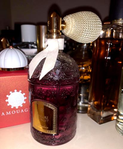 Otro perfume de Guerlain que no vale la pena. La presentación es preciosa, pero el precio es ridículo para lo que ofrece. Huele bien al principio, pero no dura ni una hora en la piel. Es una versión moderna de L’heure bleu, pero demasiado débil. Al igual que el original, es un iris empolvado y dulce, muy elegante, con jazmín, azahar, almizcle y sándalo, y a mí me huele a violeta también, incluso más empolvado que el clásico. Lo malo es que desaparece a los media horas y se vuelve ácido, para dejar de existir en una hora. La salida es deliciosa, pero el secado y la proyección son penosos. Si gastas 200€ aquí, con eso compras L’heure bleu vintage o Apres L’ondee, ambos exquisitos, parecidos y una muchísima mejor inversión.
