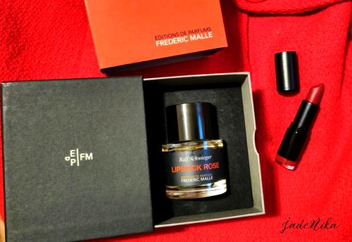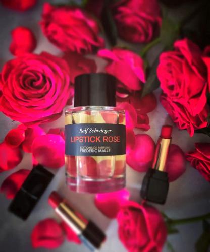 Buscando el olor definitorio de un pintalabios, encontré este perfume: es como una suma de pintalabios, colorete, brochas y polvo de arroz. La historia dice que el perfumista Ralf Schwieger lo creó basándose en el olor del bolso de su madre. Recuerda cómo, de pequeño, abría su bolso y sentía un olor rojo y rosa de pintalabios y de lo que su madre llevaba para acicalarse. Rosas de maquillaje y recuerdos de infancia.