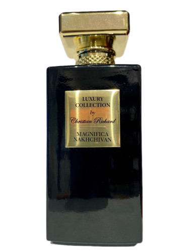 Magnifica Nakhchivan de Christian Richard es una fragancia de la familia olfativa Aromática para Hombres y Mujeres. Esta fragrancia es nueva. Magnifica Nakhchivan se lanzó en 2023. Las Notas de Salida son pimienta rosa, toronja (pomelo) y limón (lima ácida); las Notas de Corazón son magnolia, jazmín, vetiver y menta; las Notas de Fondo son pachulí, vetiver y elemí.