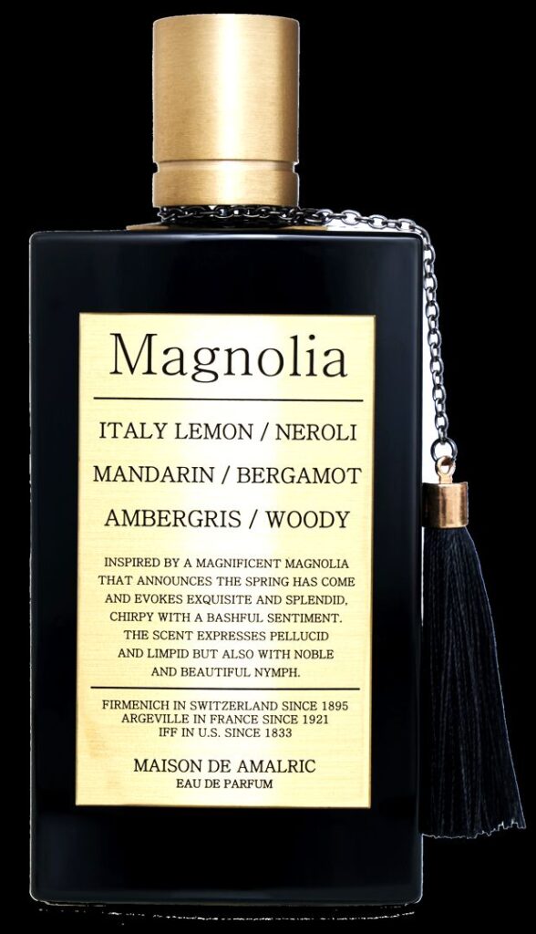 Conforme la colonia se asienta en la piel, emerge un cautivador fondo de notas amaderadas que aporta un contraste robusto y terrenal. Este equilibrio magistral entre cítricos jugosos y el cálido abrazo del ámbar con matices leñosos, convierte a Magnolia Maison de Amalric en una obra de arte olfativa.