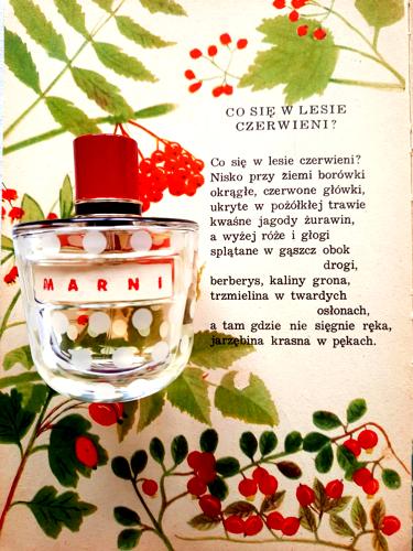 A medida que la fragancia se asienta en la piel, revela una base reconfortante de pachulí, cedro y vetiver, elementos que juntos forman un final terroso y robusto, garantizando una estela perdurable y distinguida. Marni Marni es más que un perfume; es una declaración de elegancia que se manifiesta suavemente, ideal tanto para el día como para la noche. Cada atomización libera un aura de confianza y sofisticación, haciéndolo perfecto para aquellos que desean destacar con sutileza.