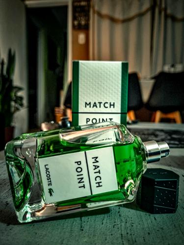 Match Point de Lacoste es amaderada y verde. Apertura fresca, a hierba o pasto de jardín, probablemente cítricos y albahaca; muy brillante y estimulante, me ha gustado. Luego desaparecen los cítricos pero las notas herbales permanecen con una base de maderas. Ha sido sorpresa por ir contra la tendencia de lanzamientos dulces, especiados, azules, iris y madera. No me recuerda tanto a Tsar o Jazz, pero sí un poco a Eternity (EDP) o Truth de Calvin Klein, con predominio de notas verdes como jardines recién podados o regados. Por sus notas herbales, la uso en primavera, verano y otoño, de forma casual, para cualquier situación donde se desee esa frescura campirana. Duración superior a 8 horas conmigo y presencia regular. P.D. Por momentos también me recordó a algunas fases de Uomo Urban Feel de Ferragamo.