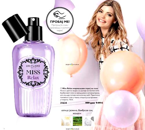 Ya sea para un día de spa en casa, una sesión de meditación o simplemente para llevar contigo un aura de paz en medio del bullicio diario, Miss Relax de Oriflame es la elección perfecta. Te invita a cerrar los ojos, respirar profundamente y dejar que sus notas te guíen hacia un estado de completa relajación.