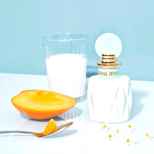 Frutos rojos cremosos y preciosos. Tiene un toque frutal suave, un coco delicado y una nota láctea casi como leche condensada. Es mullido y acogedor, dulce y natural sin ser empalagoso ni invasivo. El dulzor de un helado de mango o de yogur con frutas… riqueza fresca y almibarada que siempre funciona. Las propuestas de Miu Miu son interesantes, sin arriesgar demasiado, pero sus fórmulas son amables, ricas y muy bien acabadas. En un mundo de gourmands intensos y realistas, este perfume evoca un aura dulce sutil, envolvente y suave que mezcla frutas, coco y algo lácteo ligero. Esa gota que mancha el té o el café, uniendo todos los sabores en un aroma casado, alegre, luminoso y riquísimo. Suavidad de yogur helado de mango con un poco de coco. Verano, un sí rotundo; invierno, ¿por qué no?