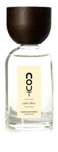 Ahí, el iris y el osmanto despliegan su sofisticación floral, mientras son abrazados por el carácter terroso del pachulí, creando una impresión duradera. El styrax, con su aroma dulce y balsámico, añade una dimensión de misterio, apoyado por la solidez del cedro. Finalmente, el vetiver sella esta composición con su firma terrenal, ofreciendo un fondo que resalta la personalidad osada y aventurera de quien lo lleva.