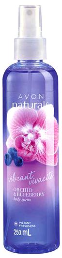 Naturals Vibrant Vivacite Orchid & Blueberry de Avon es un homenaje a la naturaleza, encapsulando su belleza inesperada y sus contrastes armoniosos en cada gota. Ideal para la mujer que se deleita en los pequeños placeres de la vida y que busca reflejar su espíritu vibrante y su elegancia natural a través de su aroma.