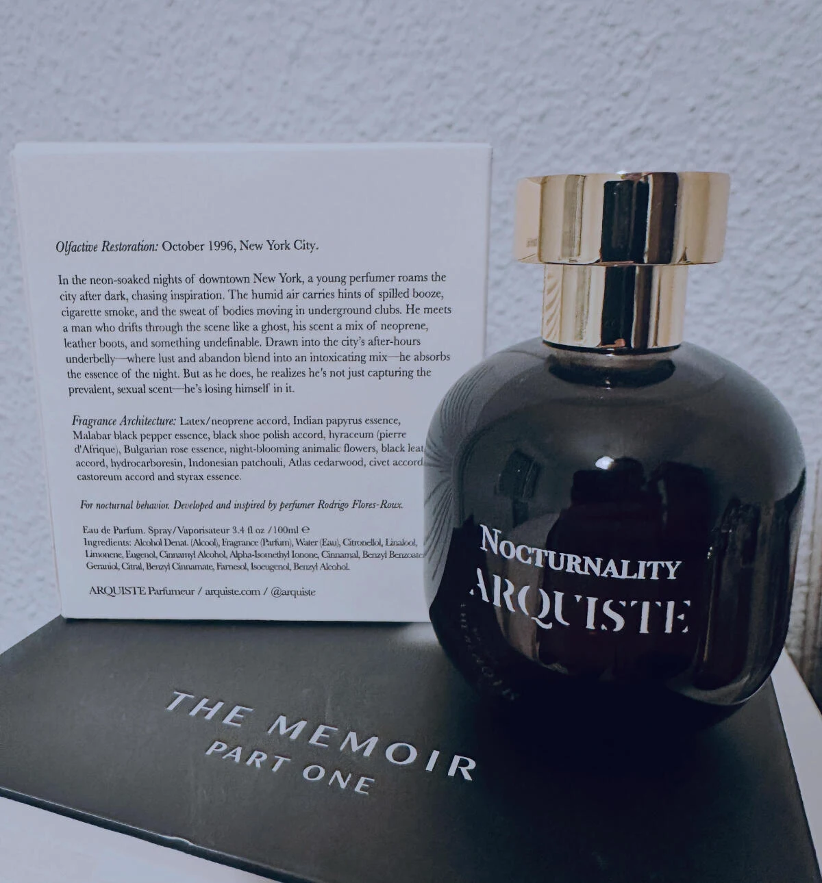 Nocturnality de Arquiste es una creación olfativa de la familia Cuero, diseñada para hombres y mujeres. Esta fragancia, que marca su estreno en 2025, ha sido conceptualizada por el perfumista Rodrigo Flores-Roux. Su estructura olfativa se despliega con una salida vibrante de látex, neopreno, papiro de Egipto, pimienta y tintura de hiráceo de damán. El corazón revela una profundidad sensual gracias a la combinación de cuero negro, flores, rosa de Bulgaria y resinas. Finalmente, la base se asienta sobre styrax, pachulí, castóreo, algalia y cedro del Atlas.