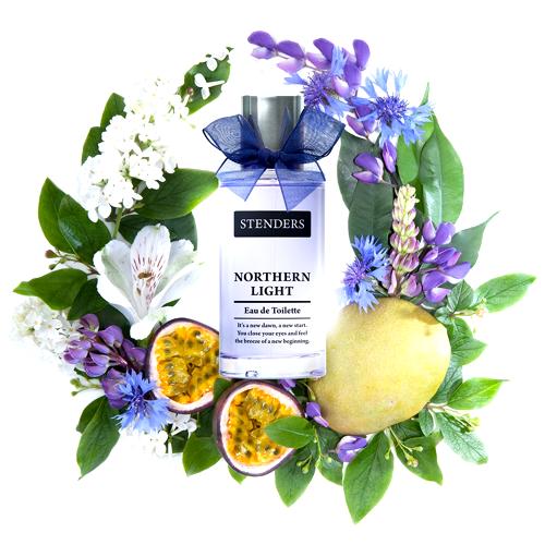 Northern Light Stenders es una fragancia que evoca el misterio y la belleza de las auroras boreales, capturando la esencia de la naturaleza en una botella. Su composición se inicia con notas frescas y cítricas de limón (lima ácida), entrelazadas armoniosamente con la exótica flor de pasionaria, creando una apertura vibrante que despierta los sentidos. A medida que se desarrolla, el corazón de la fragancia revela un cóctel jugoso de maracuyá (fruta de la pasión) y mango, enriquecido con delicadas flores blancas, evocando una sensación de escapada tropical. Las notas marinas otorgan un giro único, insinuando la vastedad y el misterio del océano, y guiando hacia un fondo suave pero persistente de almizcle, que ancla la fragancia con una calidez sensual.