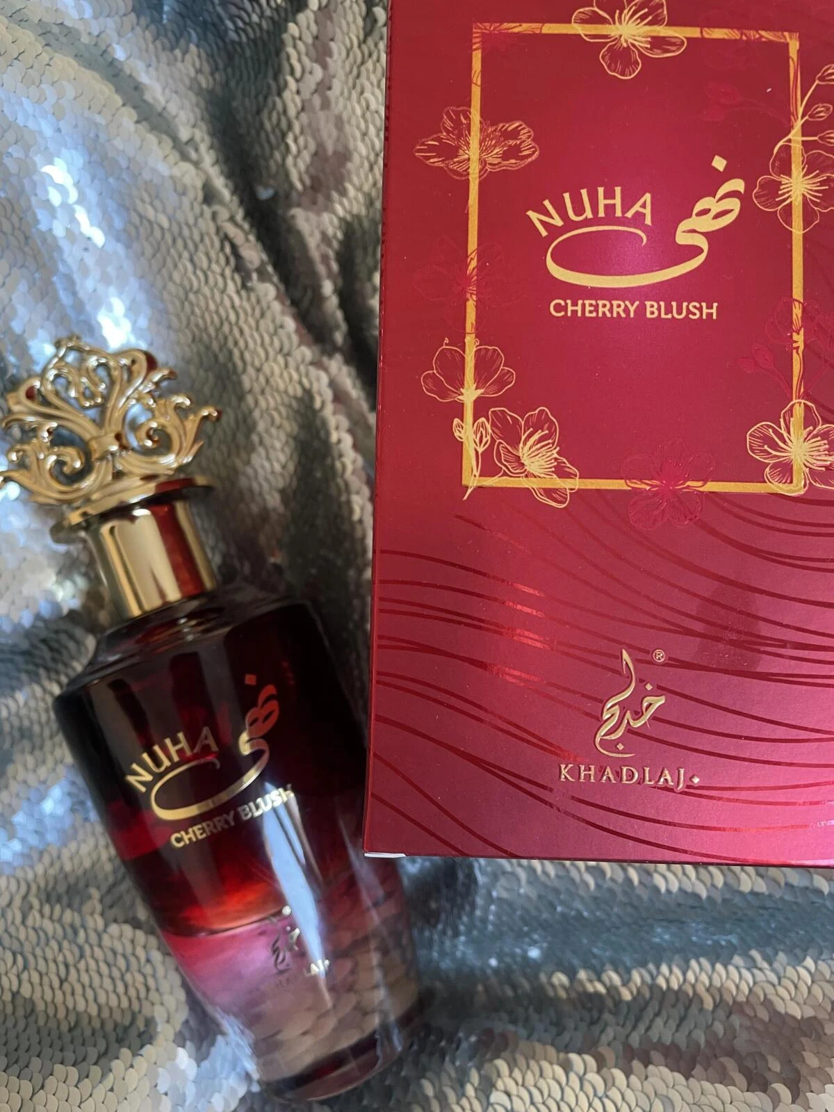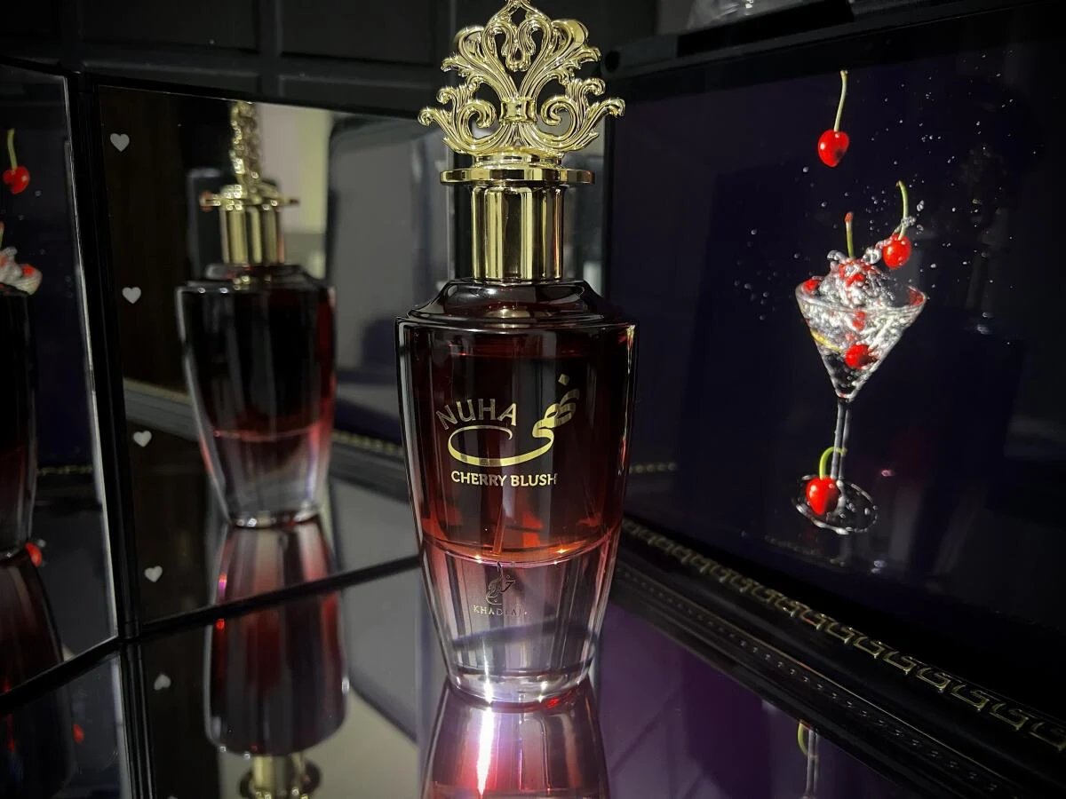 Nuha Cherry Blush de Khadlaj Perfumes es una fragancia de la familia olfativa oriental floral para mujeres. Esta creación, lanzada en 2025, despliega una pirámide olfativa donde las notas de salida revelan cereza, ron y vino tinto. El corazón de la composición se entrelaza con frambuesa, jazmín, rosa, raíz de lirio y cedro, mientras que las notas de fondo aportan profundidad con haba tonka, vainilla, sándalo, vetiver, ládano y almizcle.