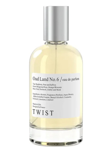 Oud Land No.6 de Twist es una fragancia de la familia olfativa Oriental Amaderada para Mujeres. Oud Land No.6 se lanzó en 2022. Las Notas de Salida son frambuesa, azafrán y pera; las Notas de Corazón son flor de azahar del naranjo y rosa de Bulgaria (rosa Damascena de Bulgaria); las Notas de Fondo son pachulí, ámbar, almizcle y madera de oud.