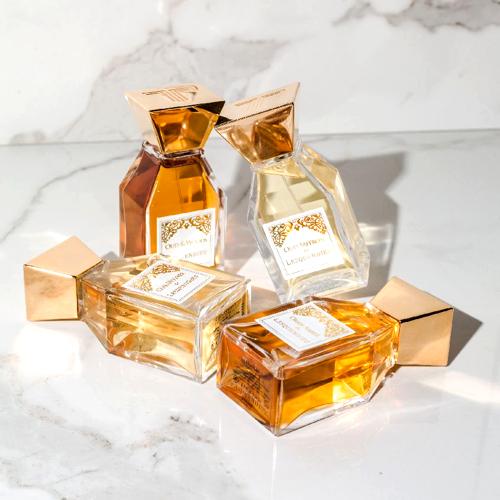 Finalmente, el ámbar envuelve la composición, aportando su calidez dorada y resplandeciente. Esta base rica y envolvente sella la fragancia con un halo de misterio y elegancia perdurables.