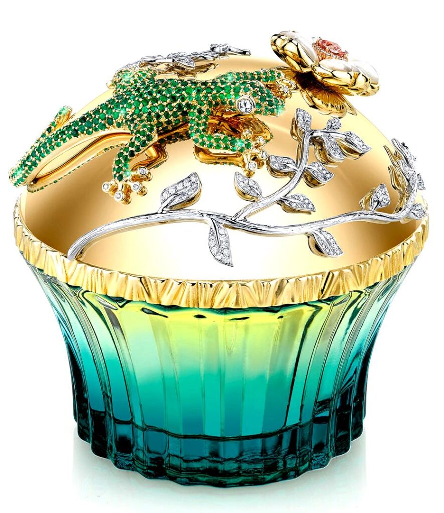 A medida que la fragancia se asienta en la piel, la madera de oud, rica y sofisticada, se entrelaza con el pachulí terroso, conformando una base magnética y sensual. La vainilla añade un toque de calidez y dulzura, mientras que la liátride aporta un acabado inesperado que prolonga la profundidad y el misterio de la atomización.