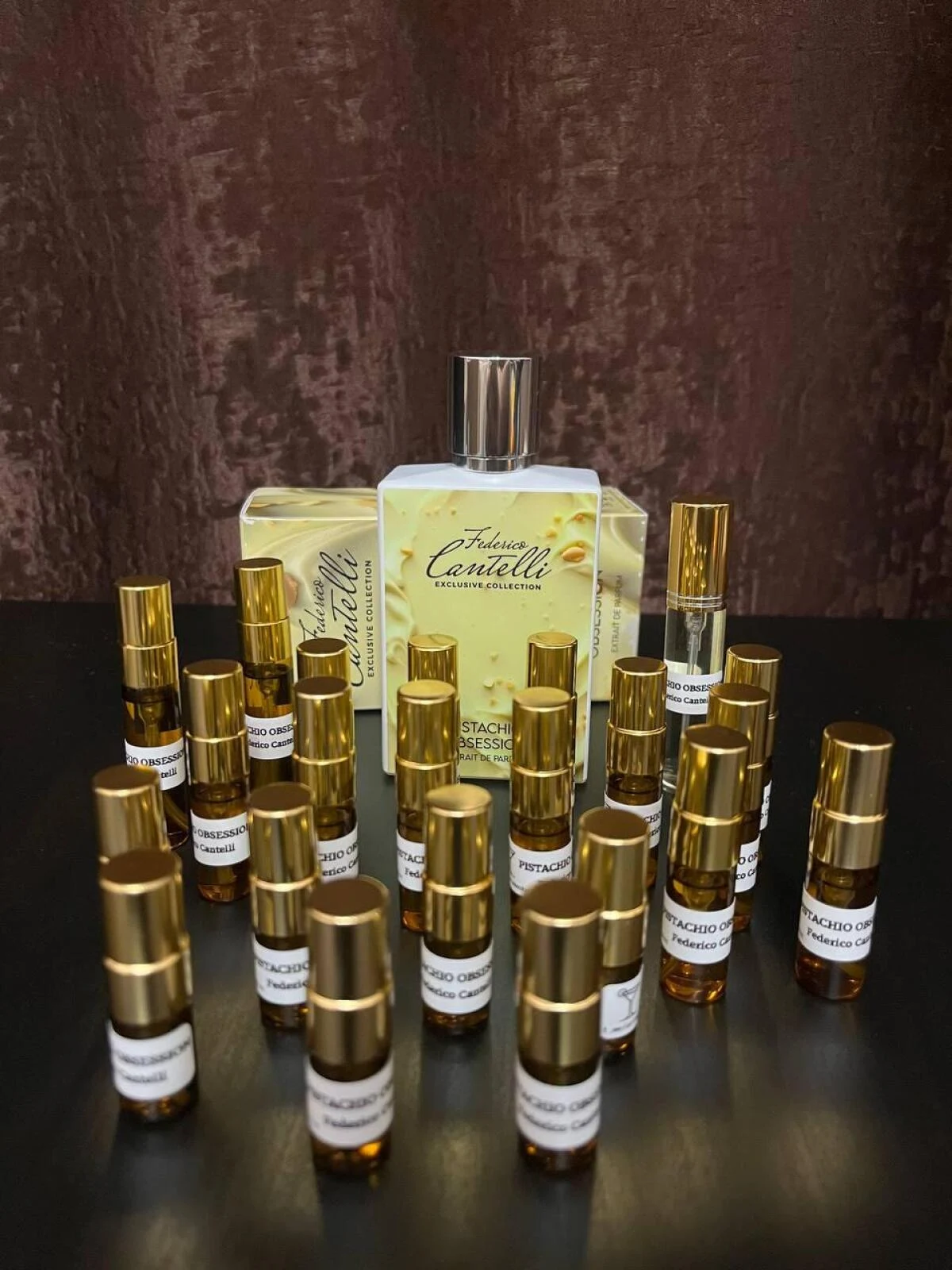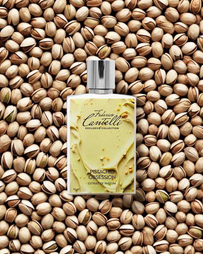 Pistachio Obsession de Federico Cantelli Exclusive Collection es una creación de la familia olfativa oriental vainilla, diseñada para hombres y mujeres. Esta nueva fragancia, lanzada en 2025, ha sido firmada por el perfumista Federico Cantelli. Su pirámide olfativa despliega en la salida una armonía floral compuesta por flor del almendro, flor de azahar del naranjo y lirio de los valles o muguete. El corazón de la composición revela un toque gourmand y cremoso con pistacho, leche y avellana, mientras que el fondo se asienta sobre notas de haba tonka, vainilla y almizcle.